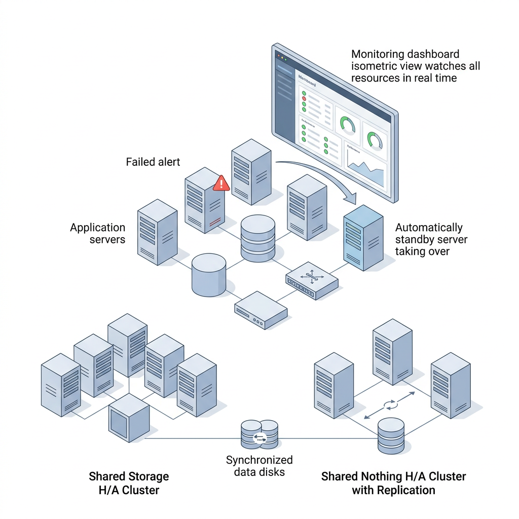 - 모니터링 Resource (Application, Server, Storage, Data, Network 등)을 주기적으로 감시하여, 장애발생시 자동으로 Fail-over하여 서비스를 복구
