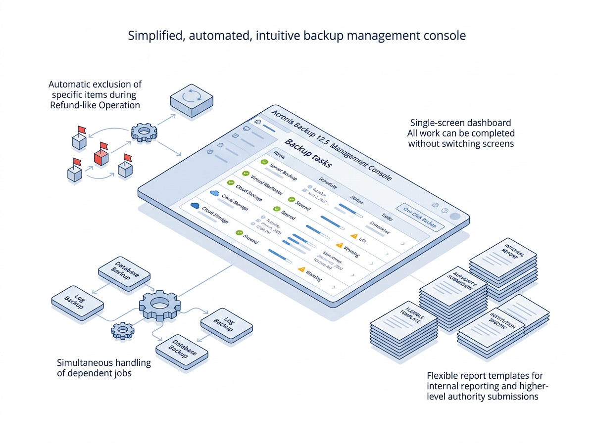 중앙화된 대시보드로 전체 백업 작업을 실시간으로 추적하고 자동화합니다.